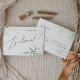 Treten Sie ein in eine Welt der Verzauberung mit unserer skurrilen Grün- und Goldbrilladenkarte, die perfekt für Ihre botanische Frühjahrsheirat geeignet ist. Die mit einem schlauen grünen Eukalyptus und goldenen Akzenten geschmückte Karte der Braut strahlt Eleganz und moderne Laune aus. Stellen Sie sich einen Spaziergang durch einen zauberhaften Sommergarten vor, umgeben von den beruhigenden Geräuschen der Natur. Das Design trägt mühelos den rustikalen Charme des Herbstes mit seinen hellgrünen Farbtönen ein und erinnert an die Schönheit der sich verändernden Jahreszeit. Mit einer Touch von minimalistischer Eleganz und klassischem böhmischen Flair, die schimmernden Imitate Goldfolie Details fügen eine Touch von Glamour und Romantik. Diese Karte mit einem anmutigen, märchenhaften Ambiente strahlt Klasse aus und zeigt die natürliche Pracht des Herbstes. Gerne stehen wir Ihnen für Fragen zum Design zur Verfügung und lass uns Ihnen bei der Hochzeit Ihrer Träume behilflich zu sein.
