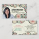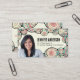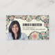 This business card features a hand-drawn border of abstract spirals, circles, and flowing lines. The color palette combines soft peach, mint green, and beige to create a warm, organic aesthetic. The doodle frame wraps around the edges, naturally drawing attention to your professional headshot and name.