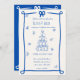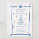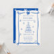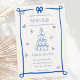 Diese trendige, handgezeichnete illustrierte Hochzeitseinladung besticht durch einen knackigen Bogen und einen Champagnerturm. Das skurrile und sonderbare Design beinhaltet handgeschriebenen Schriftart und Festdoodles. Mediterraner Blau-Weiß-Stil für klassische und moderne Hochzeitsfeste.