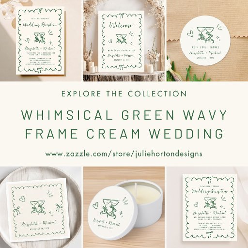 Whimsical Green Wavy Frame Cream Wedding ReceptionDesignt von Julie Horton