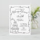 HandGezeichnet Swirling Rahmen Probe Dinner Einladung. Dieses skurrile und stilvolle Design ist der ideale Ort, um ein Probe-Dinner zu genießen. Die Einladung ist in Schwarz und Weiß gehalten und verfügt über einen wirbelnden dekorativen Rahmen mit charmanten Herzdetails, der die Informationen des Abendessens elegant umkreist und in einer Mischung aus Schrift-Kalligraphie und Schriftart mit sauberen Sans-Serifen für ein modernes und dennoch raffiniertes Aussehen präsentiert wird. In der links unteren Ecke des Gebäudes sorgt eine spielerische Illustration eines Champagner-Glasturms mit einer Champagnerflasche, die oben bläst, für eine feierliche Touch, die das festliche Ambiente verstärkt. Die Kombination aus dem wirbelnden Rahmen und lebendigen Details schafft ein einzigartiges und raffiniertes Design. Auf der Rückseite ist ein charmanter Akzent mit einer Skizze aus Champagnerflasche und Glas erkennbar, die das Thema perfekt miteinander verbindet. Vollständig anpassbar, können Sie Text, Schriftart und Layout an Ihre Veranstaltung anpassen. Diese Einladung ist als Druckkarte oder als Download erhältlich und ist eine stilvolle Möglichkeit, Ihr Probe-Dinner mit Eleganz und Persönlichkeit anzukündigen.