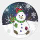 Whimsical Hand zeichnete Schneemann auf der Sterne Runder Aufkleber