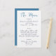 Dieses lässige und skurrile Hochzeitsmenü mit einem Schriftart, der die Handschrift nachahmt, ist ideal für eine Sommerhochzeit, eine lässige Hochzeit oder jede andere Feier, bei der Sie individuelle Menükarten verwenden möchten. Diese Menüvorlage hat einen blauen Hintergrund - aber alle Farben dieser Hochzeitsmenükarte können im Designwerkzeug angepasst werden! Dort können Sie auch die Position des Textes ändern.