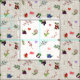 Die Shows haben delightful pattern gemacht. The pattern feature a mix of botanical elemente and small hearts scattered across a light beige background. Various type of berries, leaves, and flowers in different colors, including purple, red, and blue, make up the design. Small hearts in red, pink, and purple are interspersed among the botanical elements, creating a delicate and whimsical look reminiscent of nature.