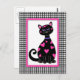 Dieses skurrile Kätzchen ist mit rosa Herzen bedeckt und hat einen rosa Rahmen mit schwarzem Gingham-Rahmen.