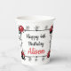 these ladybug party cups help create a coordinated and festive look for your celebration. The text on the design is customizable, allowing you to personalize it with a name, age, or special message to match your party theme.