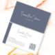 Einfaches, minimalistisches, modernes, weißes und blau-graues Kalligraphiedesign auf blau-grauem und weißem Hintergrund. QR-Code für zusätzliche Informationen.
