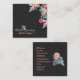 Handgemalt Stil whimsical vivivid blumengeschmückte Blüten auf schwarzen einzigartigen quadratischen Visitenkarten mit handgeschriebenen Schriftzeichen. Pfirsichfarben, grün, blau grün und rot-orange. Passen Sie die Einstellungen auf der Rückseite der Karte an.