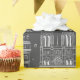 Das Whimsical-Muster besticht durch das beste Pariser Leben, vom Eiffelturm und Arc de Triomphe bis hin zu Bistro-Sitzen und Makaronen. Weiße Doodles auf grauem Chalkboard-Hintergrund.