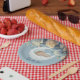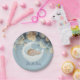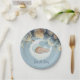 Whimsical Party Paper Plates surround a peaceful sleeping baby in this charming invitation, perfect for welcoming your little prince. This design features a delicate watercolor illustration of a baby boy resting on a soft, fluffy cloud, framed by a lush arrangement of midnight blue and champagne gold roses.