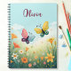 Dieses personalisierte Notizbuch zeichnet sich durch eine charmante und skurrile Abbildung eines pastellfarbenen Schmetterlingsgartens aus, in dem zwei farbenfrohe Schmetterlinge zwischen sanften Wildblumen flattern. Der traumhafte Hintergrund zeichnet sich durch eine subtile Reinigung von Blume aus, die eine beruhigende und bezaubernde Atmosphäre schafft.