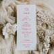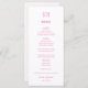 Whimsical Dinner Einstellung Doodle, Hochzeitsmenü. Features, Cerise Pink Typografie mit hellrosa Streifen Muster-Rückseite.
