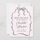 Ein einfaches handgeschriebenes Skript moderne pinstripe mit Bogen, doodle Hochzeit speichern Sie das Datum Ankündigung. Für einen einfachen, minimalistischen, lässigen, lustigen, Hochzeitsreisetyp. Schwarze Typografie auf blasspastellrosa Pinstripes. Ein entspannter lässiger Hochzeitsdoodle-Stil, der sich ein wenig in einen niedlich romantischen Pariser Whimsicalcore-Stil mit handgezeichnetem Ambiente verwandelt.