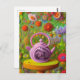 Eine skurrile Postkarte mit künstlerischer Intelligenz erzeugte ein Kunstwerk eines gequillten Teekopfes auf einer farbenfrohen Blumenlandschaft.