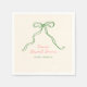 Whimsikale Brautparty-Servietten mit einem wunderschönen handgezeichnet Bogen in einem lustigen und spielerischen Stil, begleitet von einem lässigen, handgeschriebenen Schriftart, der perfekt die Spannung und Freude des Anlasses einfängt. Die Servietten sind in einem wunderschönen Farbschema aus Waldgrün und Korallen gehalten, das Gefühle von Natur, Wärme und Glück weckt. Diese Farben ergänzen perfekt das spielerische Design und erhöhen die festliche Stimmung der Veranstaltung.