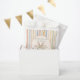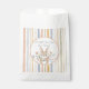 Present your party favors in these whimsical storybook-inspired guest gift bags. This design features a hand-painted watercolor bunny centered among soft meadow wildflowers set against a muted vertical stripe background. Perfect for a gender-neutral woodland baby shower or a sweet nature-themed birthday celebration.