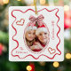 Whimsical Red Wavy Frame Bow Foto Weihnachten Keramikornament