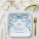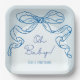 Whimsical Retro Blue Hand Drawn Bow Baby Dusche Pappteller