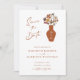 Whimsical Retro Boho Blues Hochzeit Save the Date.. Ein skurriler Blumenstrauß im Retro-Böhmischen Stil befindet sich in einer Terrakotta Vase überlagert mit Ihren Hochzeitstermin-Nummern. Das Design zeigt Ihre Save the Date Details in modernen Kalligrafiebeschriften sowie elegante Serifen und serifenlose Typografie. Auf der Rückseite der Karte befindet sich der QR-Code Ihrer Hochzeitswebsite, damit die Gäste Ihre Reise verfolgen und wichtige Informationen über Ihre nächsten Nuptials einsehen können. Alle Texte, mit Ausnahme des Kalligraphieskripts, können auf der Personalisierungsvorlage leicht überarbeitet werden.