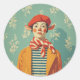 Whimsical Retro Christmas Elf Runder Aufkleber