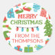 Whimsical Weihnachtsgeschenke Aufkleber lassend Ihre Freunde und Verwandten wissen, dass das Weihnachtsgeschenk von Ihnen und Ihrer Familie ist. Mit einem skurrilen Retro-Design, inspiriert von zwielichtigen 50er-Cartoon, der Frohe Weihnachtsaufkleber zeigt Weihnachtsbäume, verpackte Weihnachtsgeschenke, Heilige, einen Elfhut, Elfschuhe und farbenfrohe Weihnachtsbeleuchtung. Personalisieren Sie mit Ihrem Namen!