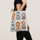 Dieser bezaubernde personalisierte Totbeutel bietet eine reizvolle Sammlung von gezeichneten Tierdoodles mit Löwen, Zebras und Affen. Es ist mit sanften, abgerundeten Linien und pastellfarbenen Hintergründen in Minzgrün, Babypink, Powder und Blassgelb gestaltet.