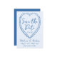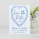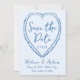 Feiern Sie Ihre anstehende Hochzeit mit dieser charmanten und skurrilen Save the Date-Karte, die "Save the Date" in handgeschriebenem blauen Drehbuch, umgeben von einem handgezeichnet Herz auf einem sanften hellblauen Hintergrund. Dieses Retro-inspirierte Design ist zugleich einzigartig und elegant und bietet eine angenehme Art, Ihren besonderen Tag zu verkünden. Passen Sie die Karte mit Ihren Namen, dem Hochzeitstag und dem Ort an, um einen personalisierten Sake zu schaffen, der Ihnen den Ton für Ihre unvergessliche Feier Set.
