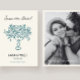 Whimsical and flower vase "Save the date" wedding invitations with room for a personalized photo in the back.