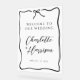 Ein einfaches handgeschriebenes, modernes, minimalistisches, schwarz-weißes Zeichen für Hochzeitsempfang mit einem gewellten Band-Rahmen mit einem kleinen Bogen in handgezeichnetem Stil. Informeller whimsical coquette Stil. Einfache moderne Laune. Für einen informellen, spielerischeren Hochzeitsstil.