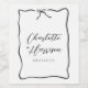 Ein einfaches handgeschriebenes Skript moderner minimalistischer Schwarz-Weiß-Typografie Hochzeitsweinetiketten, gerahmt mit einem gewellten Band-Rahmen mit Bogen in handgezeichnetem Stil. Informeller whimsical coquette Stil.