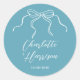 Ein einfaches handgeschriebenes Skript, moderne minimalistisch weiße Typografie Hochzeitsweinetiketten auf blau, gerahmt mit einem gewellten Band-Rahmen mit Bogen in handgezeichnetem Stil. Informeller whimsical coquette Stil. In 2 Größen und Finishs erhältlich sind matt oder glänzend.