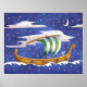 Whimsical Segelschiff mit einer Katze als Kapitän segeln durch die Sterne.