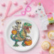 Whimsical Skeleton Riding Mummy T-Rex Halloween Pappteller