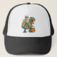 Whimsical Skeleton Riding Mummy T-Rex Halloween Truckerkappe