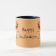 Boo! Perfekt für Ihren Halloween-Bash! Dieses whimsical Halloween Tasse hat einen Spooky Niedlichen Geist. Auf der einen Seite hält er einen Kürbisballon, auf der anderen einen Jack-o-Laterne. Fledermäuse füllen den nächtlichen Himmel. Der Verse sagt: "Happy Halloween." Personalisieren Sie diese Niedliche Halloween-Tasse für Ihre Herzen Inhalte!