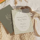 Mit dieser Whimsical Stripe Green Wedding Einladung verleihen Sie Ihrem großen Tag eine charmante Touch und moderne Eleganz. Mit spielerisch handgezeichnet Streifen in sanften grünen Farbtönen und zeitloser Typografie verbindet dieses Design Lustigkeit und Eleganz mühelos. Diese Einladung eignet sich ideal für eine Gartenhochzeit, eine Frühjahrsfeier oder eine minimalistische Feier. Sie Set den Ton für ein leichtes und dennoch raffiniertes Event. Vollständig anpassbar, können Sie den Text, den Schriftart und das Layout einfach an Ihre Hochzeitsvision anpassen. Diese Einladung, die auf hochwertigem Papier mit verschiedenen Finish- und Formatoptionen gedruckt wurde, ist ideal für Paare, die etwas Neues, Modernes und Einzigartiges suchen. Lassen Sie sich mit dieser reizvollen, gestreiften Einladung einen unvergesslichen ersten Eindruck vermitteln.