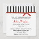 Schöne Party Einladung in Weiß, schwarze Streifen oben und ein rotes Satin-Band, das an der Wand hängt. Passen Sie den Text auf der Vorderseite dieser Karte an, um ihn zu personalisieren, für Ihr Party.