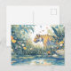 This charming postcard features a majestic tiger wandering along a peaceful riverbank. Rendered in a soft, ethereal watercolor style, the scene is filled with vibrant orange and yellow blossoms, lush teal greenery, and fluttering blue butterflies. The crystalline blue water in the foreground reflects the soft light of a clean white background, creating a serene and airy atmosphere. Every brushstroke adds to the dreamlike quality of this natural sanctuary. This postcard is perfect for sending a thoughtful note, a nature-inspired greeting, or as a beautiful decorative keepsake for wildlife enthusiasts.