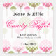 Whimsical Tree Candy Bar Sticker. Ideal für Candy-Büffets oder Kuchen-Tische bei Hochzeiten, Geburtstagspartys, Baby-Duschen, Kommunion, Bestätigungen und vieles mehr! Der Hintergrund ist mit rosa und grünen Dotty-Bäumen geschmückt.