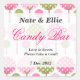 Whimsical Tree Candy Bar Sticker. Ideal für Candy-Büffets oder Kuchen-Tische bei Hochzeiten, Geburtstagspartys, Baby-Duschen, Kommunion, Bestätigungen und vieles mehr! Der Hintergrund ist mit rosa und grünen Dotty-Bäumen geschmückt.