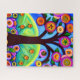 Hübsche farbenfrohe skurrile Kunstwerke. Baum in Gelb, Weiß, Blau und Lila Blumen und Blätter. Die künstlerische Intelligenz erzeugte Kunst.