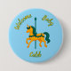 Feiern Sie mit diesem Whimsical Unicorn Baby Shower Button Button im magischen Stil! Mit einem goldenen Karussell-Einhorn mit aquamariner Mähne auf einem weichen Baby-blauen Hintergrund enthält dieser runde Knopf bearbeitbaren Text mit dem Aufdruck "Welcome Baby Caleb". Personalisieren Sie Ihren Babynamen für ein einzigartiges Gastgeschenk, Gästebuch oder Babyduschzubehör. Ein lustiger und skurriler Weg, um Ihre Feier ganz besonders zu machen!