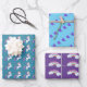Whimsical Unicorn Rainbow Heart Wrapping Paper. Set von 3 skurrilen Umhüllungspapieren. Blatt 1 verfügt über ein Einhorn auf dunklem aquamarinem Hintergrund. Blatt 2 zeigt dunkle lila Herzen auf einem leichteren aquamarinen Hintergrund. Blatt 3 zeichnet sich durch farbenfrohe Regenbögen auf lila Hintergrund aus. Jedes Blatt sorgt für Freude und Magie. Das Verpackungspapier kann Ihr Geschenk auffallen lassen und es für Ihr kleines Mädchen einzigartig machen.