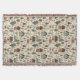 Cottage core throw blanket with a cute village of cottages and trees, mushrooms, flowers in green, brown, and earthy tones.