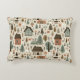 Cottage core throw pillows style village of cottages and trees, mushrooms, flowers in green, brown, and earthy tones.