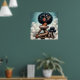 Entdecken Sie dieses wunderbare Fluffantasy-Gemälde mit einem Vintagen Button-Up-Portrayal einer afro-amerikanischen Frau in einem Leopardencatsuit, begleitet von einem pixie Poodle. Diese Ganzkörper-Illustration, die eine skurrile Note der 1960er-Mod darstellt, strahlt Charme und Stil in blauen Pastelltönen aus. Afro-amerikanische Schönheit und Retro-Mode 🌟