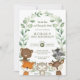 Adorable waldbezogene Geburtstagseinladung mit süßen Waldtieren und elegantem botanischem Kranz