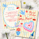 Super fun and funky Wedding Invitations. Features a striped background with blue bird with letter, champagne, cake in colors of pink a blue. All wording can be changed! Great for the modern couple or change the wording to any celebration! To make more changes go to Personalize this template. On the bottom you’ll see “Want to customize this design even further? Click on the EDIT using Design tool. From there you can change some of the fonts & some colors, move things around or delete what you need.