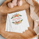 Hochzeitsnapkins aus Brautparty sind im Sommer oder Herbst ein illustriertes, blumengeschmücktes Bordeaux-Design mit farbenfrohen Aquarellfarben-Blume und Grünpflanzen in den sonnengeküssten, goldgelben, rötlich-rosa, korallenroten Orangen, violett lila und in satten Grüntönen gehalten. Das Bio handbemalte Design umrahmt den modernen und stilvollen, individuellen Text in Grautönen, Grün und Orange, der für die Braut personalisiert sein kann.