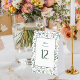 Hochzeitskarte in mehreren Tischnummern mit Blumenrahmen und Grüntext mit handgeschriebenem Schriftart